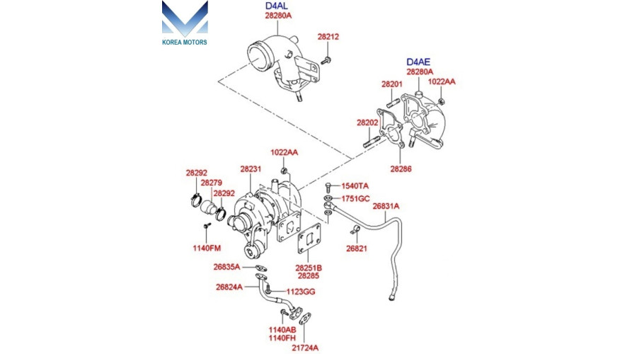 New turbocharger assy for engine 4d34 d4al diesel from Mobis manufacture for vehicles Hyundai and Kia 1998-04 year